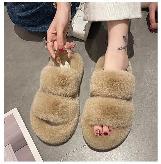 フワフワのサンダルが可愛い厚底ファーサンダル