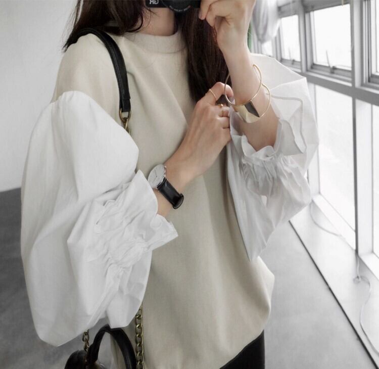 フレグランスシャツ ランタンスリーブ ステッチ ルーズ セーター ニット カジュアルトップス a1733