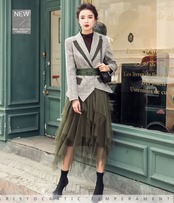【セットアップ】チェック柄ブレザー+シフォンスカート