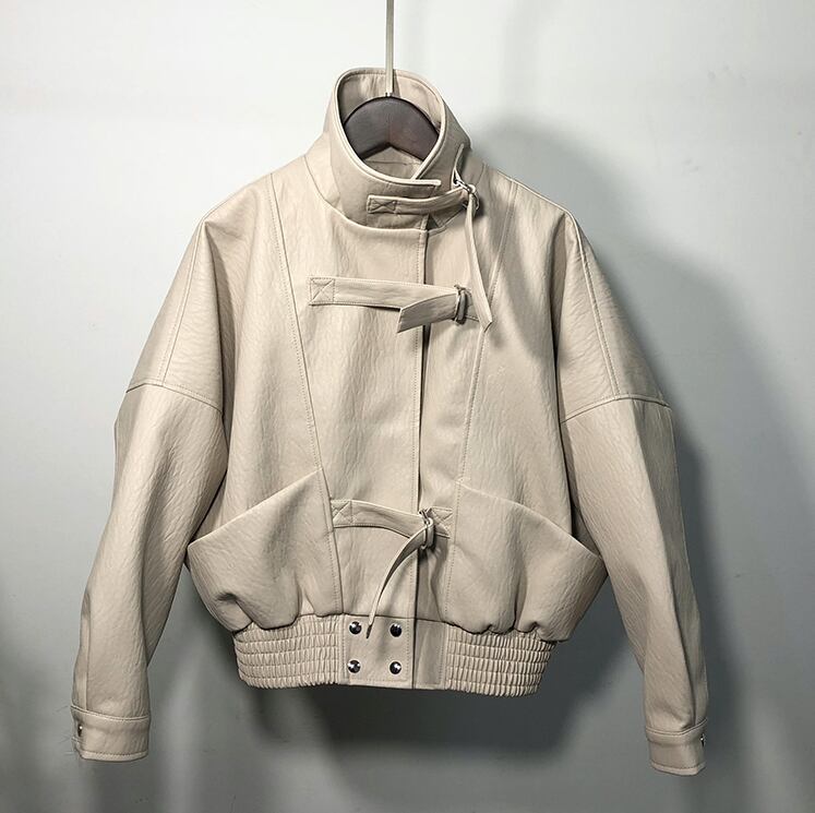 レザージャケット ルーズ BFファンカー PUレザー 革ジャン コート アウター ジャケット 2カラー a1846