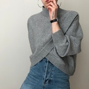 プルオーバークロス長袖ニットセーター ハイネック ルーズ ショート丈 韓国 シック ニッチデザイン a1865