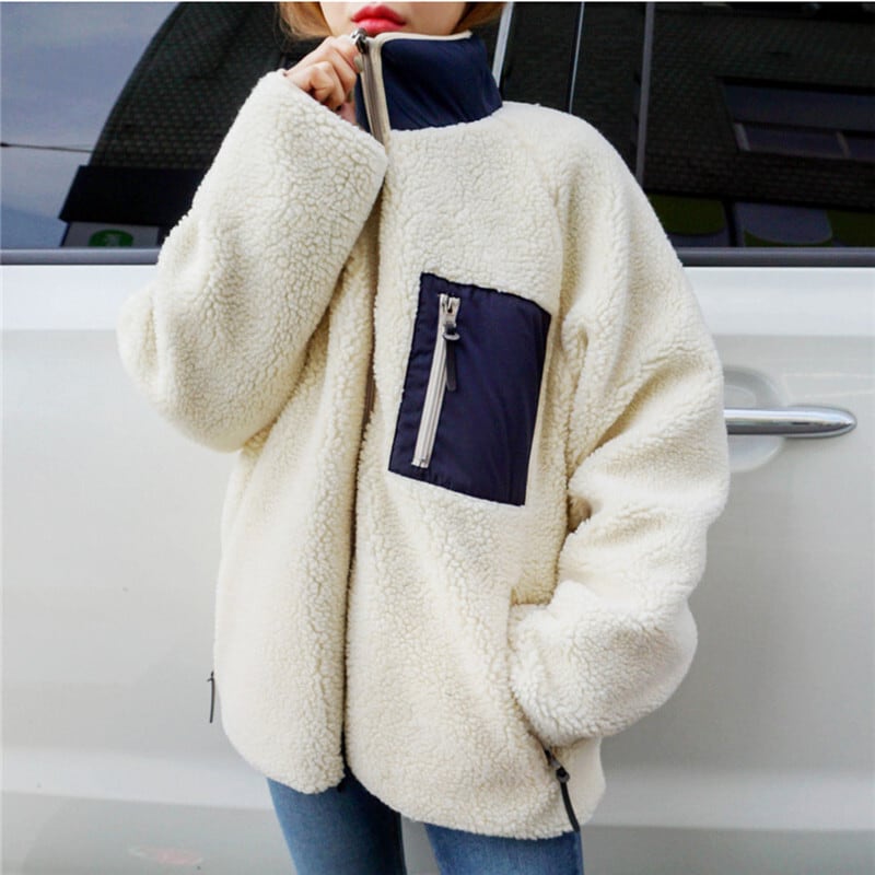 ボアジャケット ボアブルゾン リバーシブル ボアコート ハイネック 防寒 もこもこ アウター カジュアル レディース 韓国 オルチャン C70