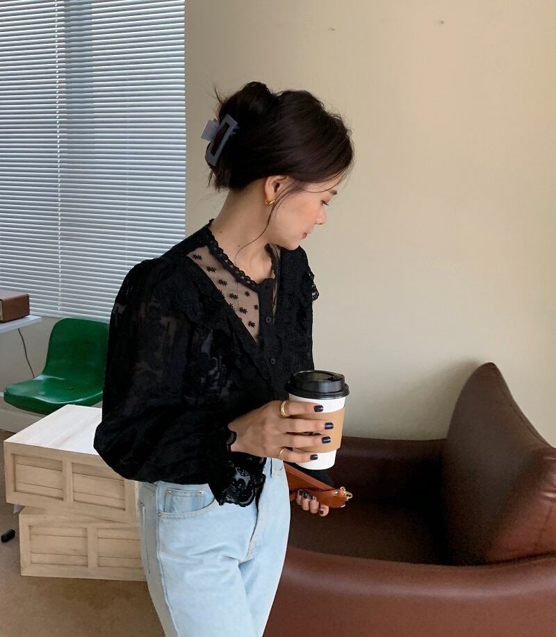 デコルテのシースルーとレース使いが綺麗なブラウス