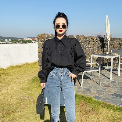 ポインテッドカラー 長袖シャツ ランタンスリーブ デザインセンスニッチ ホワイトシャツ レディースシャツ 2カラー a2108