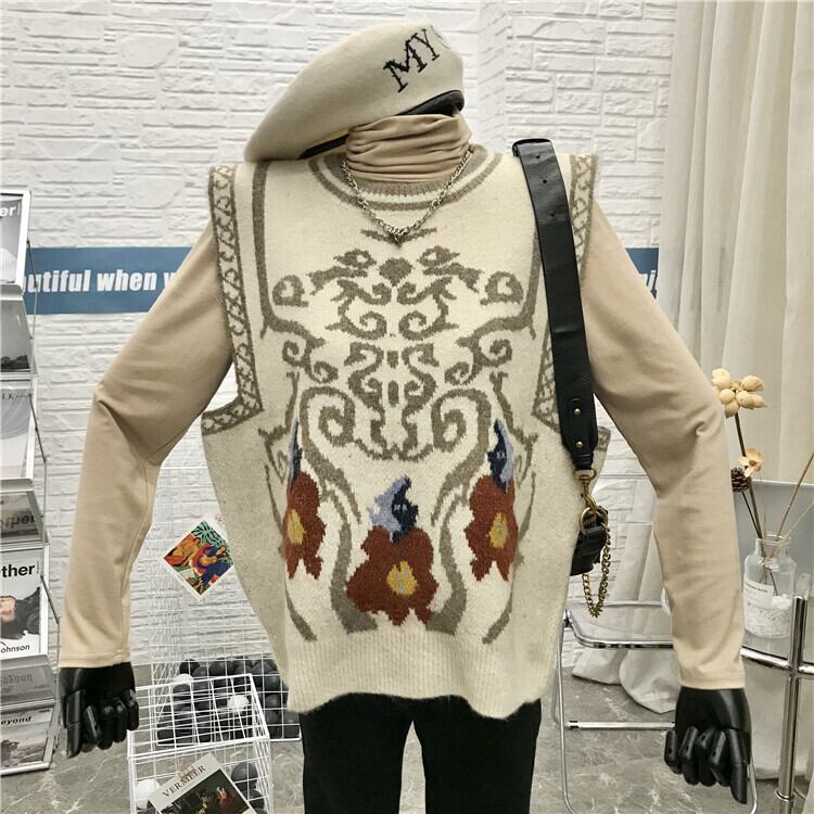 セーターベスト ニットベスト ルーズ ラウンドネック ベスト 秋冬 ノースリーブ ウエストコート セータートップコート 韓国 2カラー a2118