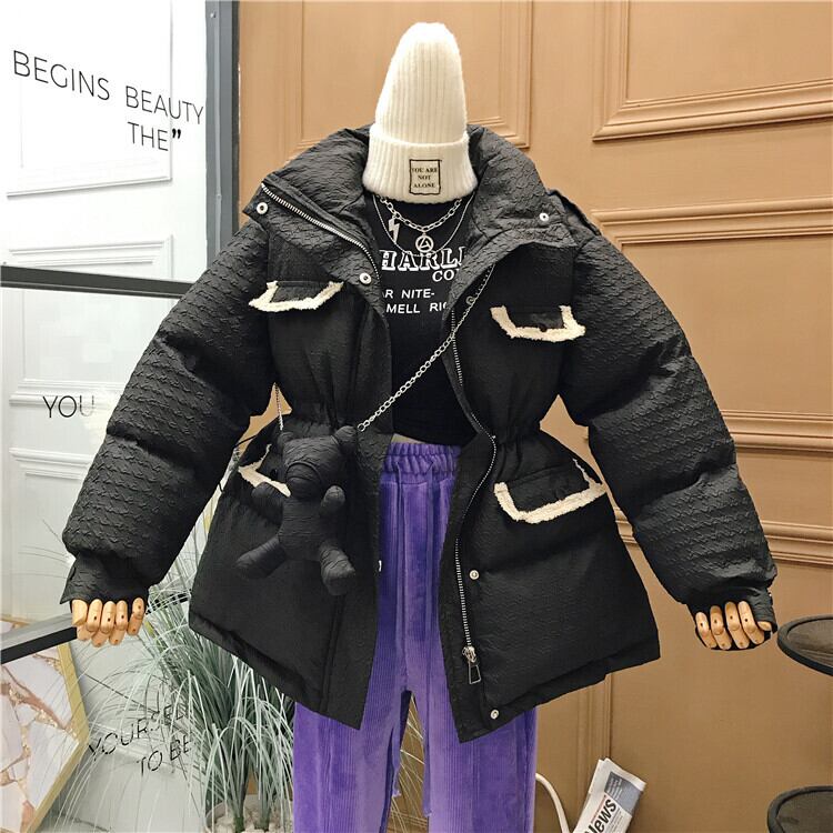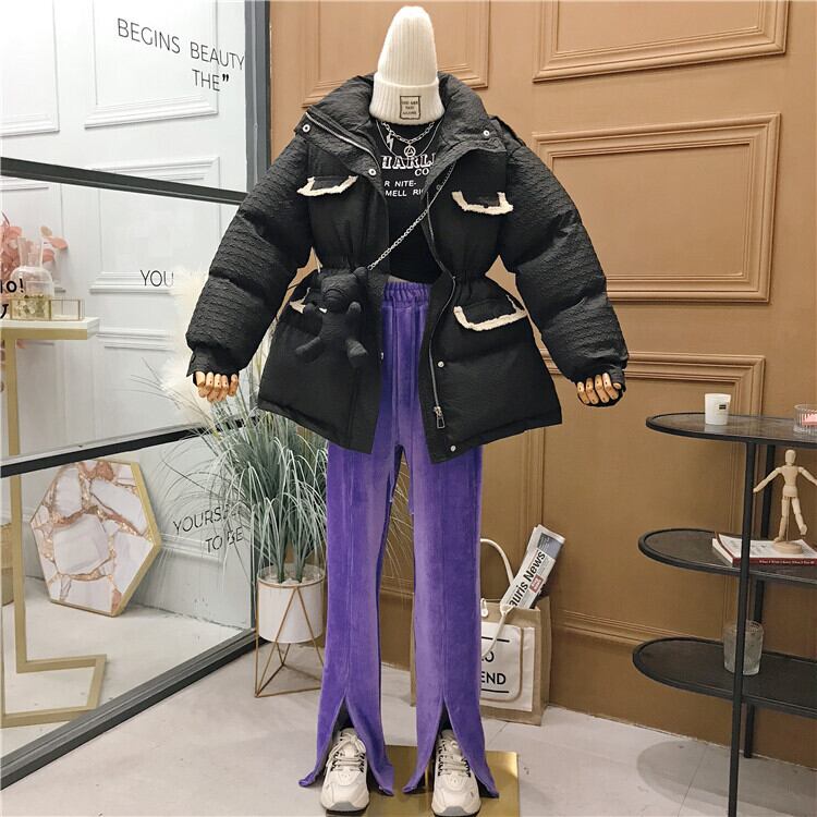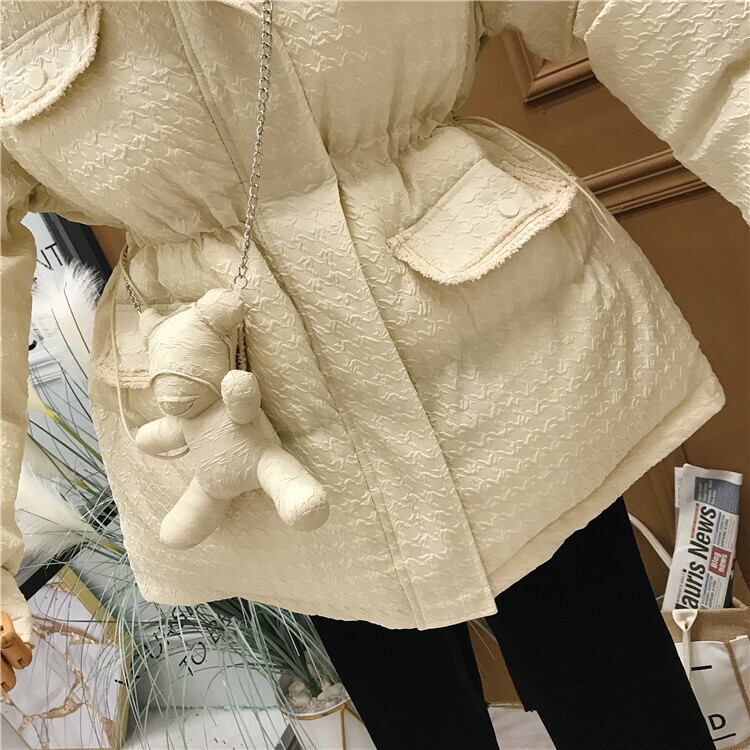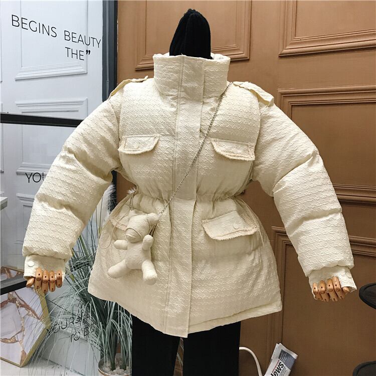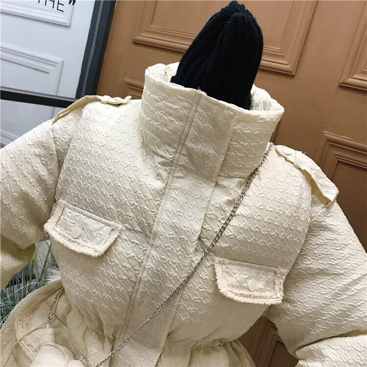 コットンジャケット スリムウエスト チェーンベア付き ハイネック 韓国 オルチャン 2カラー a1807