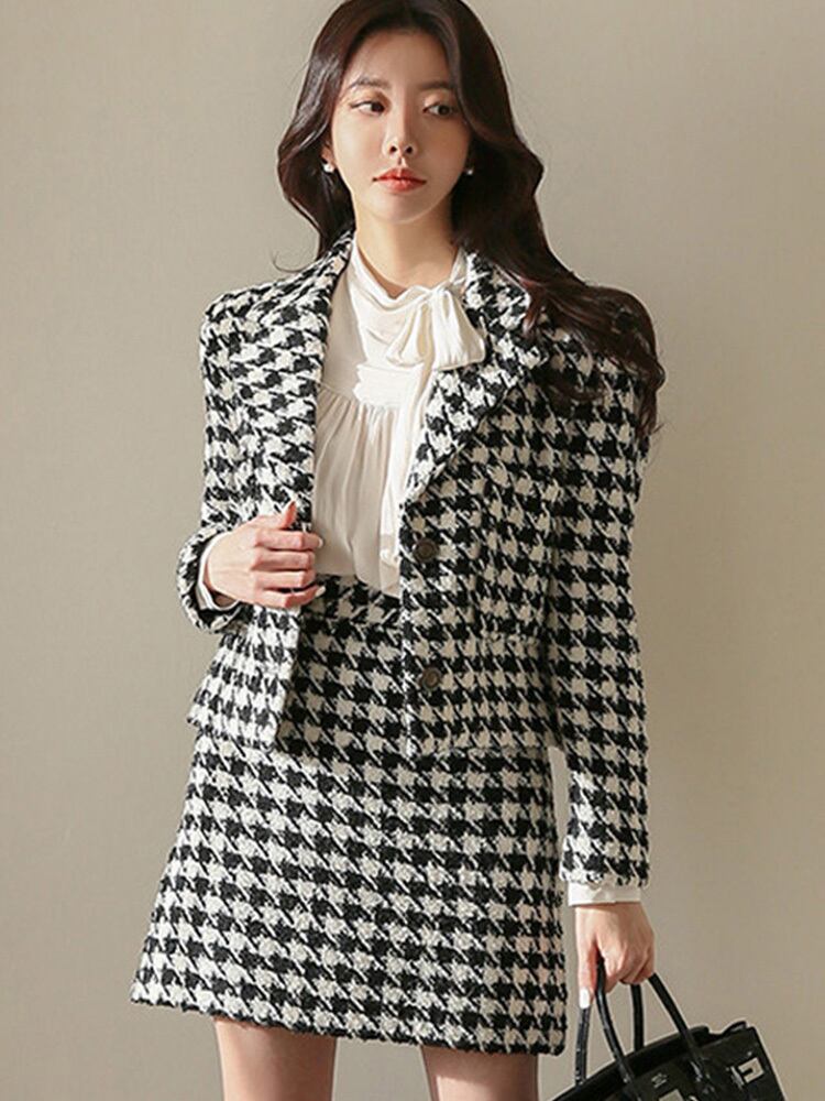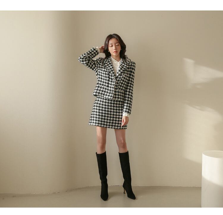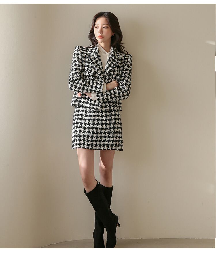 【セットアップ】千鳥格子 ショートウールコート+ハイウエストスカート スーツスカート ツーピース 秋冬 韓国 オルチャン a2227
