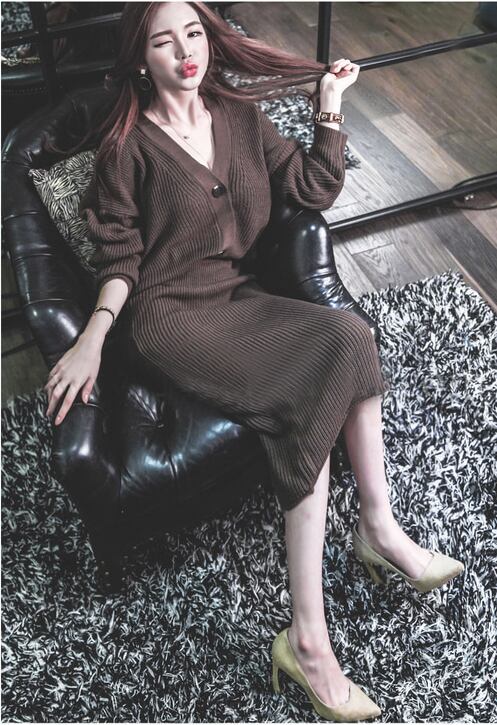 【セットアップ】Vネックルーズカーディガン+ニットスカート ニット ツーピース レディース 秋冬 ルーズ バットスリーブ 3カラー a2261