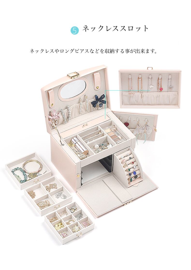 【鍵付き】ジュエリーボックス 収納ボックス 大容量 ネックレス 指輪 ピアス 鏡付き ハイエンドラグジュアリー a2322