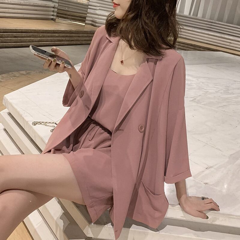【3点セット】キャミソール+ジャケット+ショートパンツ スリーピース 3カラー a2352