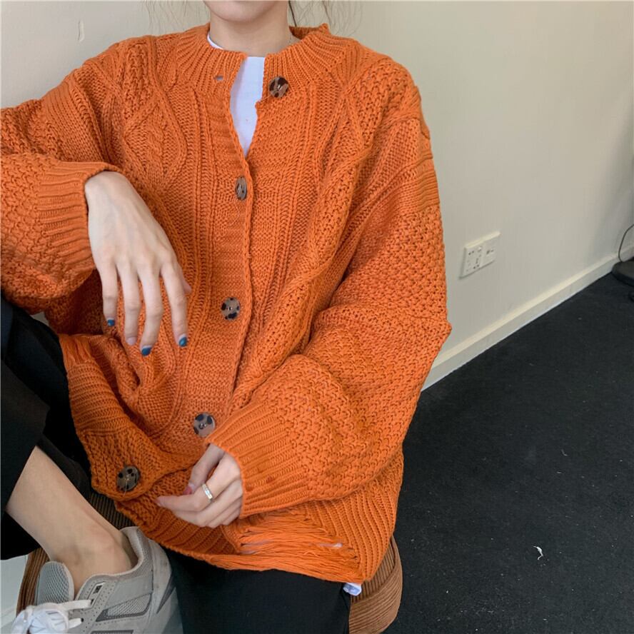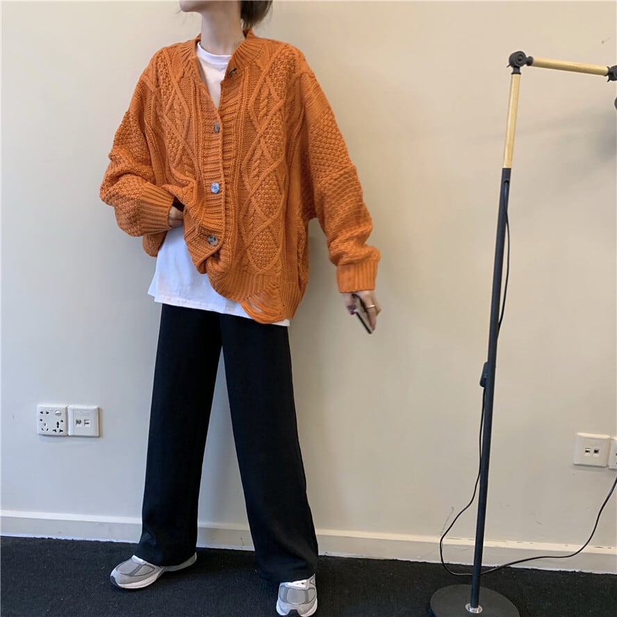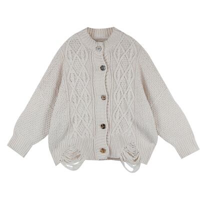 ニットカーディガン ルーズカーディガン ツイストセーター カーディガン ダメージ裾 ルーズ 韓国 秋冬 3カラー a2384