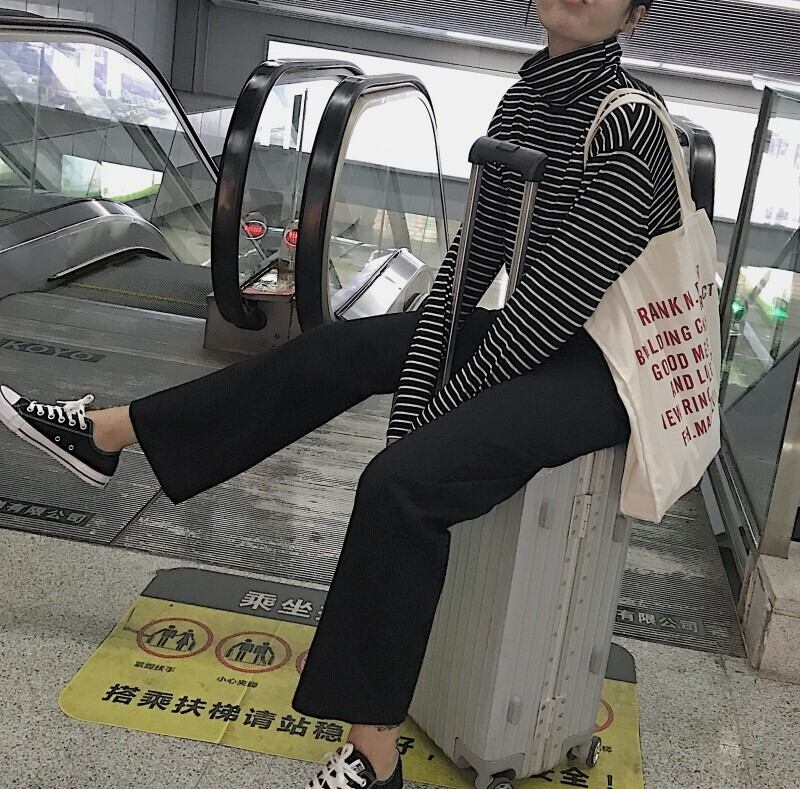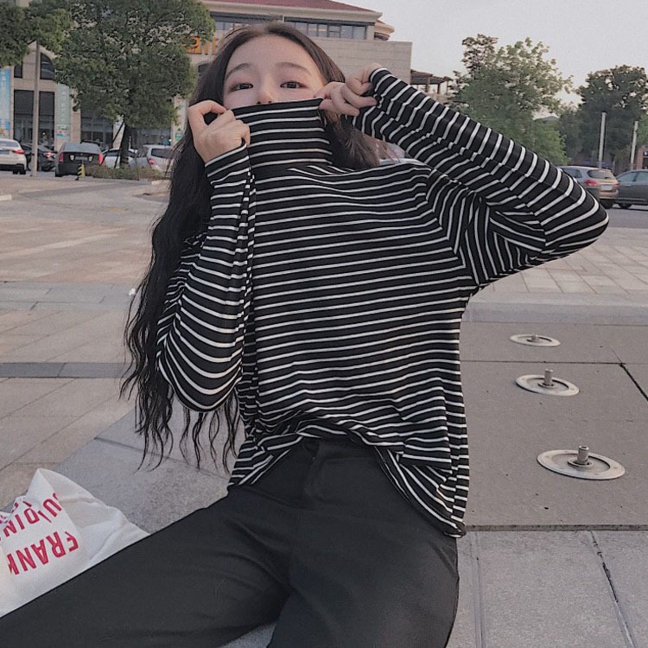 ストライプ長袖Tシャツ ボトミングシャツ ハイカラー タートルネック 秋冬 レディース 韓国 a2396