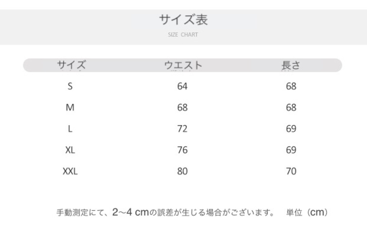 注:手動測定にて、2〜4 cmの誤差が生じる場合がございます。
