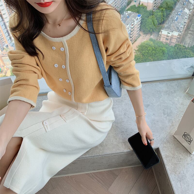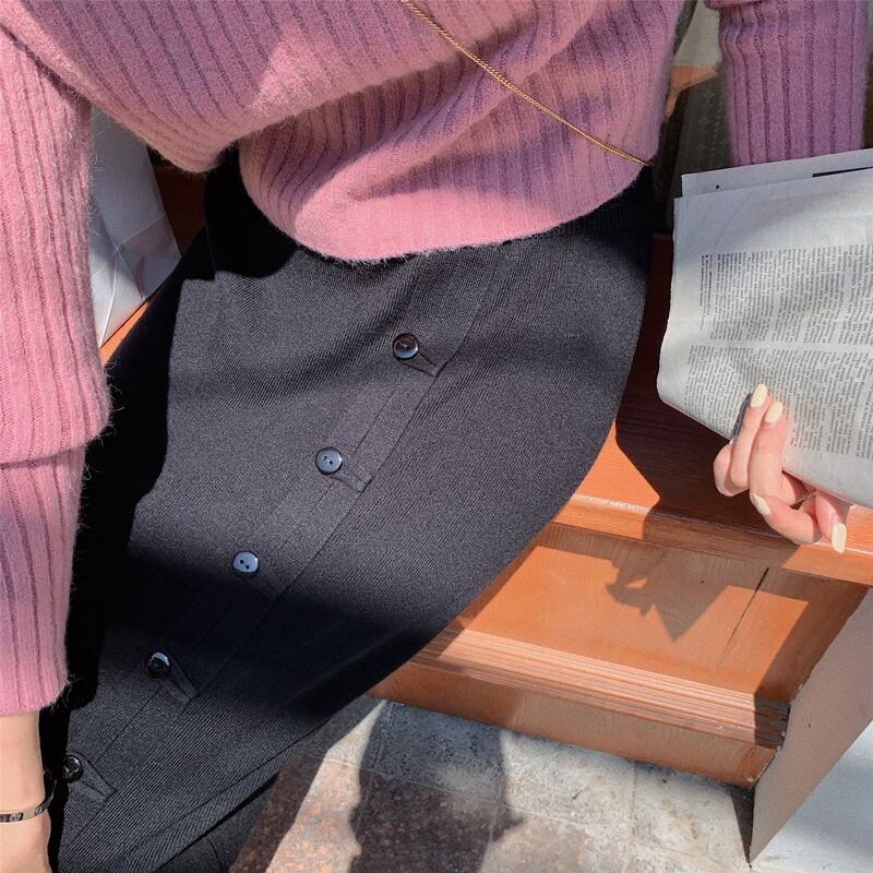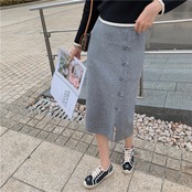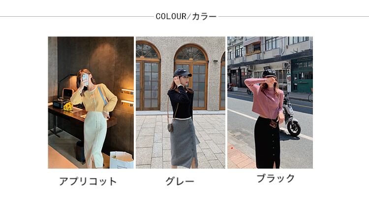 ニットスカート スプリットヒップスカート ハイウエスト ミドル丈スカート レディース ボタン 3カラー a2444