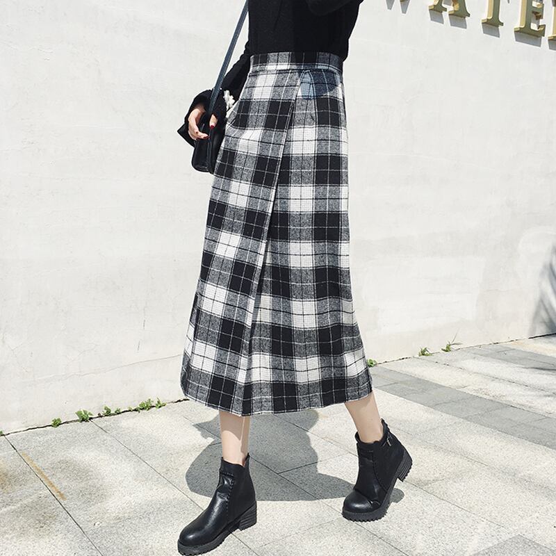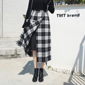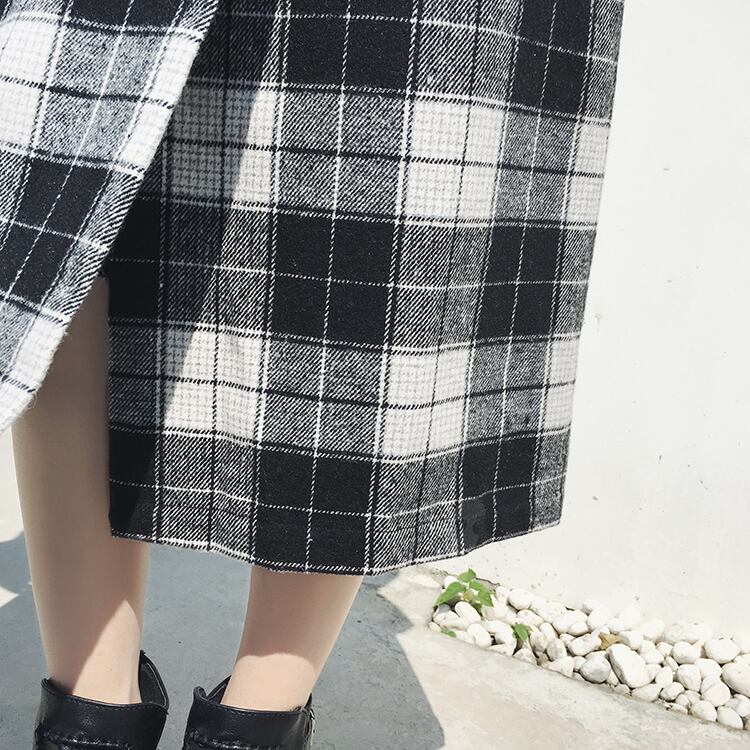 チェック柄 Aラインスカート格子縞 ウールスカート ハイウエスト レトロ カジュアル スプリット ミドル丈スカート 2カラー a2445