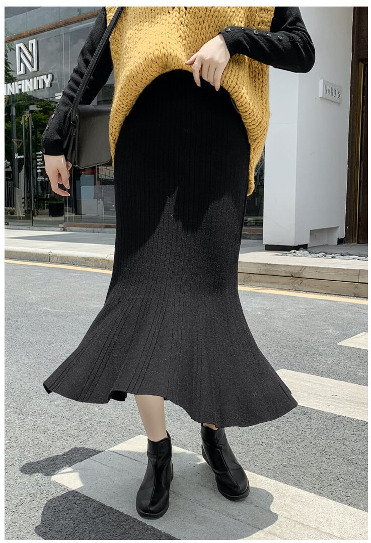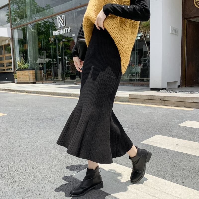 フィッシュテールスカート マーメイド ハイウエスト ミドル丈ウールニットスカート 2カラー a2446