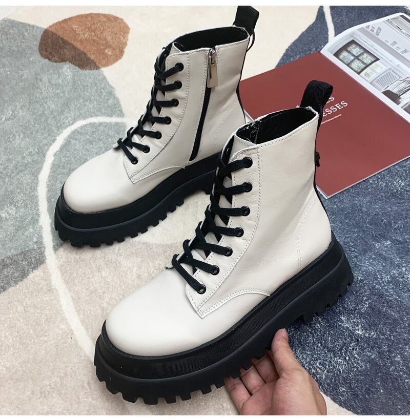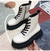 ホワイトマーティンブーツ レディース 厚底シューズ ショートブーツ ハイイングカレッジスタイル a2495