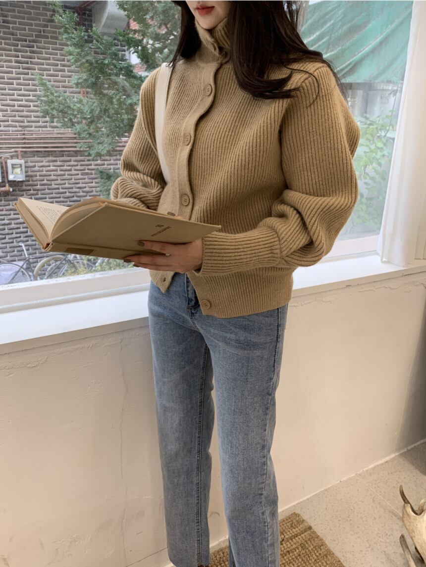 ハイネック ニット カーディガン ハイネックセーター ルーズ 長袖カーディガン 韓国 3カラー a2491