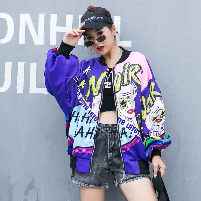 アニメプリントジャケット ブルゾンジャケット ルーズ シック ヒップホップ ストリート バットスリーブ a2561