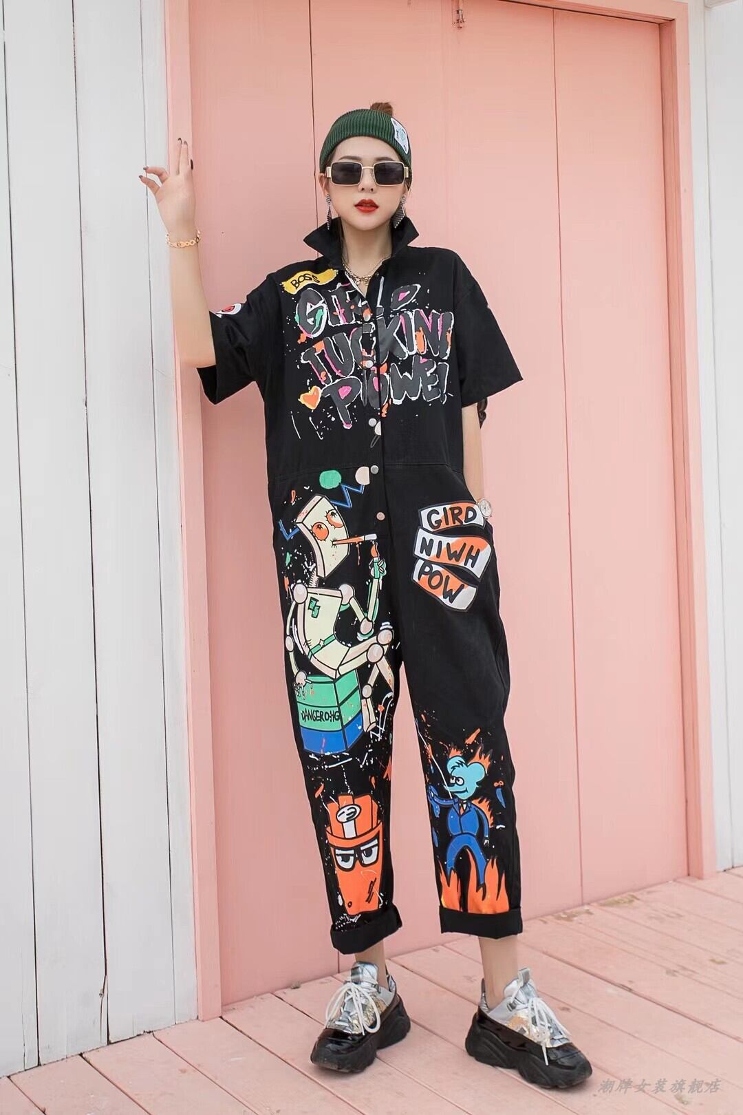 【日本未発売】ジャンプスーツ パンツ ワンピースパンツ グラフィックプリント ルーズ カジュアル ストリート a2562