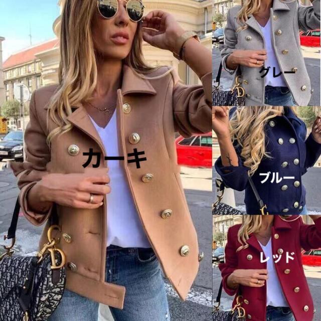 長袖ショートコート ゴールドボタン ジャケット コート ダブルブレスト 英国スタイル 4カラー a2582