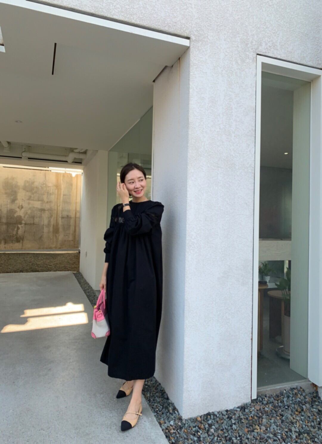 かぎ針編みレースワンピース ラウンドネック バックシングルブレスト フリル ルーズ パフスリーブ ドレス ワンピース 韓国 ルーズウエスト a2630