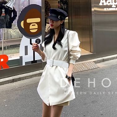 【ベルト付き】バブルスリーブジャケット レディース スーツ ルーズ ジャケット 韓国 Vネック パフスリーブ a2683