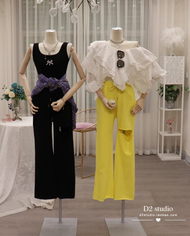 ダメージスウェットパンツ ストレートパンツ ワイドパンツ ハイウエスト ウエスタンスタイル 韓国 3カラー a 2687