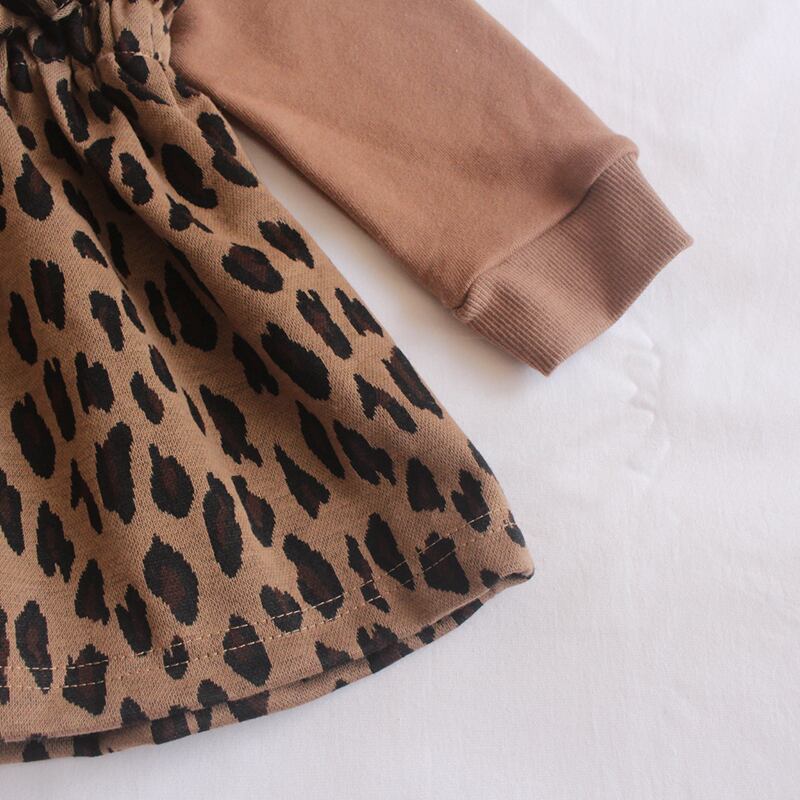 ヒョウ柄ステッチワンピース 重ね着風 長袖ワンピース ワンピース 韓国 春秋 女の子 ドレス 子供服 6-12ヶ月 1-2-3歳 2カラー k31