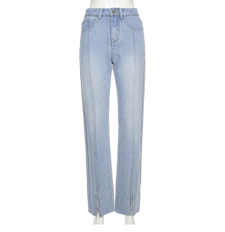 ハイウエストスリムジーンズ デニム ジーンズ ルーズ パンツ ワイルドスプリット カジュアルパンツ a2705