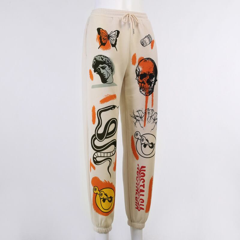 【新色登場】【日本未発売】プリントスウェットパンツ カジュアルパンツ スウェットパンツ ハイウエスト ハーレムパンツ ストリート系 アメカジコーデ a2725
