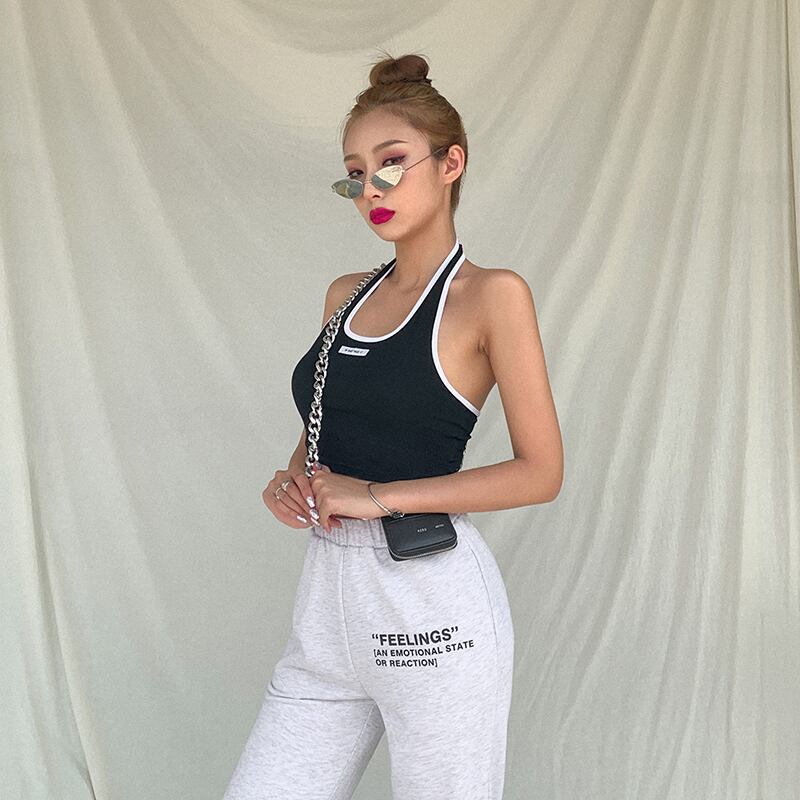 ホルターネックタンクトップ トップス タンクトップ ハイウエスト アンビリカルベスト ストリート系 アメカジコーデ a2726