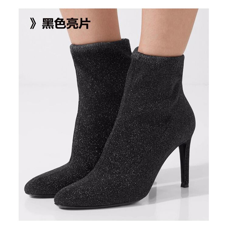 スパンコールストレッチストッキングブーツ. ラウンドトゥ. スティレットヒール. ハイヒール. アンクルブーツ. レディース. ショートブーツ. 2カラー a2746