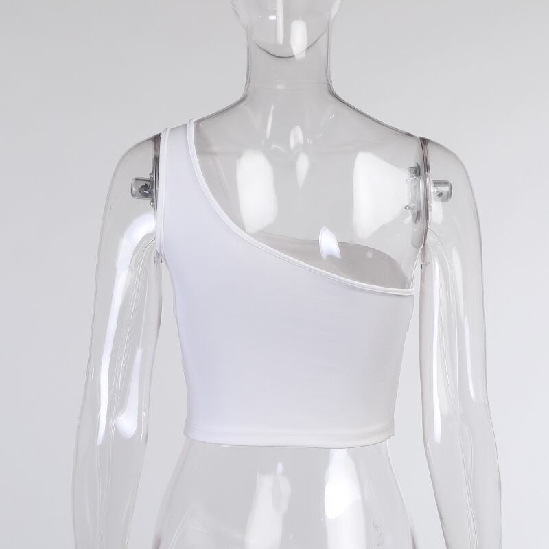 ワンショルダートップス ノースリーブ ワンショルダー スリム スリミング ショート丈 キャミソール セクシー アメカジコーデ ストリートファッション 2カラー a2754