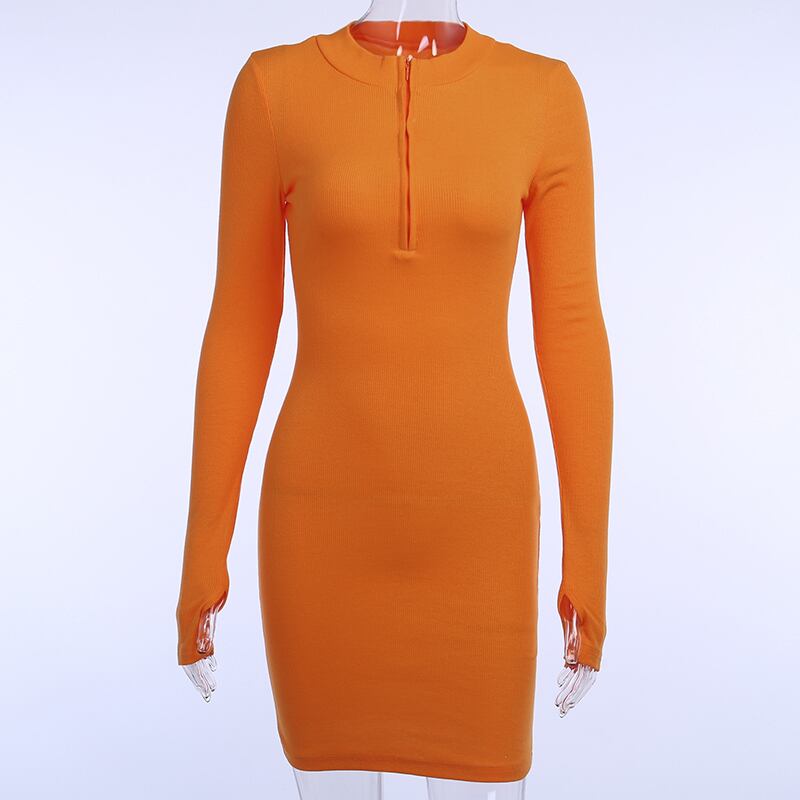 長袖ニットワンピース ジッパーニットドレス スリム 長袖 セクシー バッグヒップスカート ワンピース ドレス 4カラー a2755