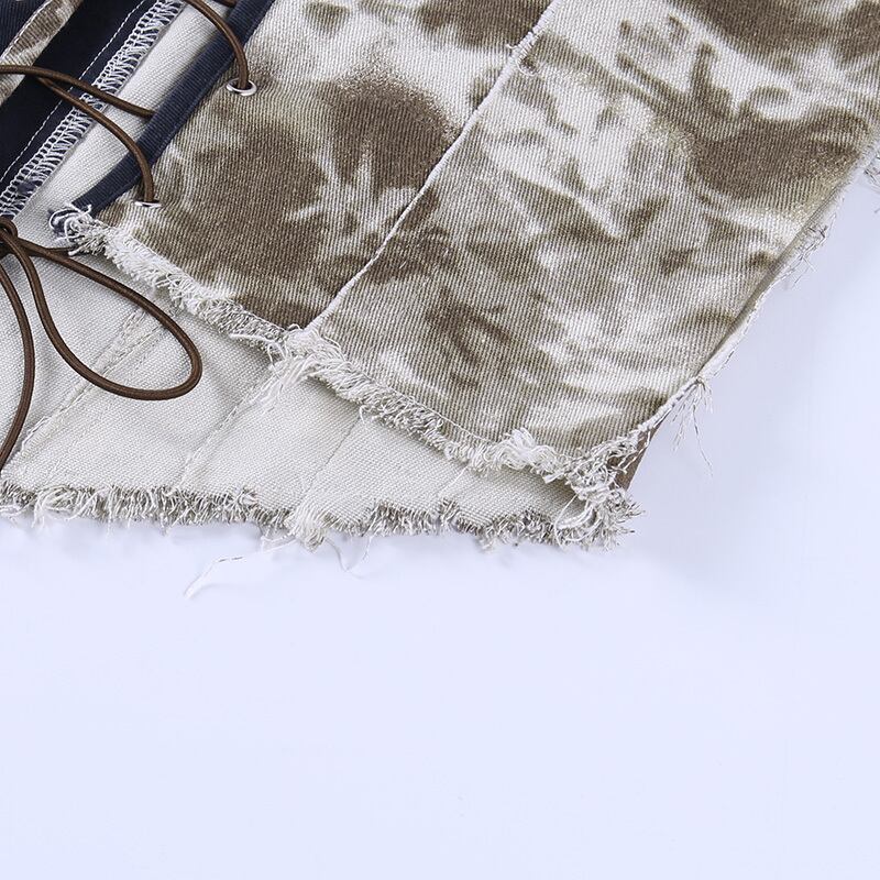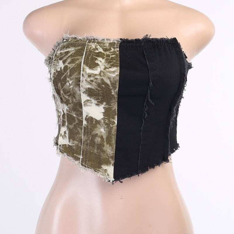 絞り染めステッチデニムチューブトップ レースアップ チューブトップ ストラップレス スリムトップス 夏 セクシー a2786