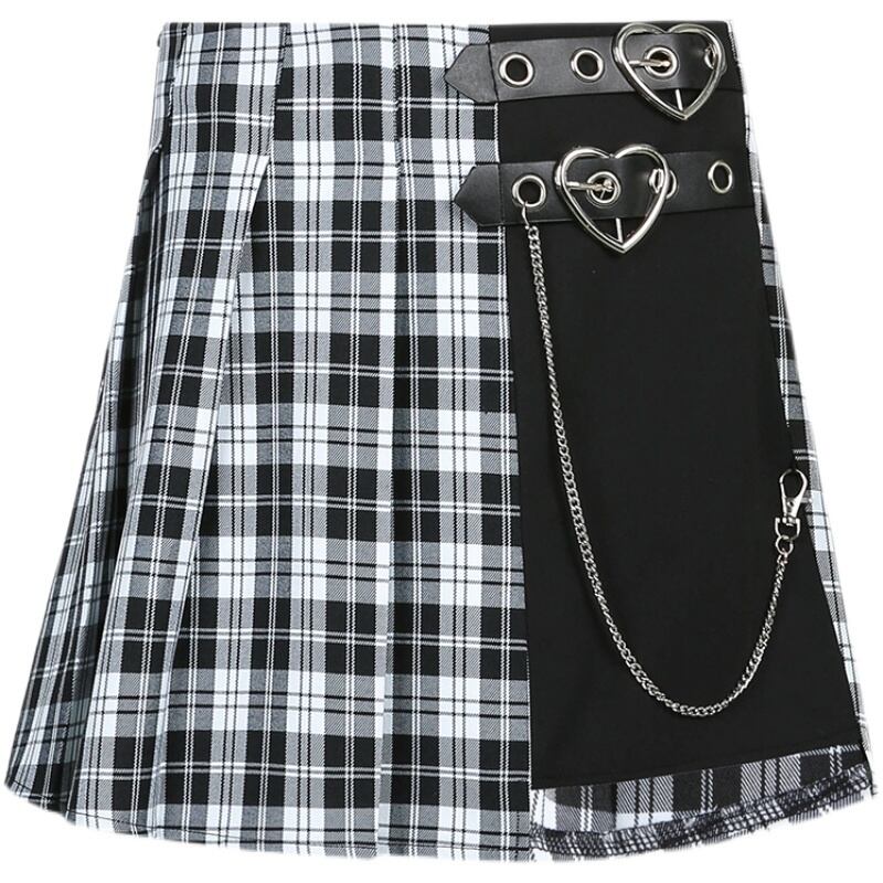 チェック柄 プリーツスカート ショートスカート チェーンプリーツスカートブラック ハイウエスト レディース Aラインスカート a2792