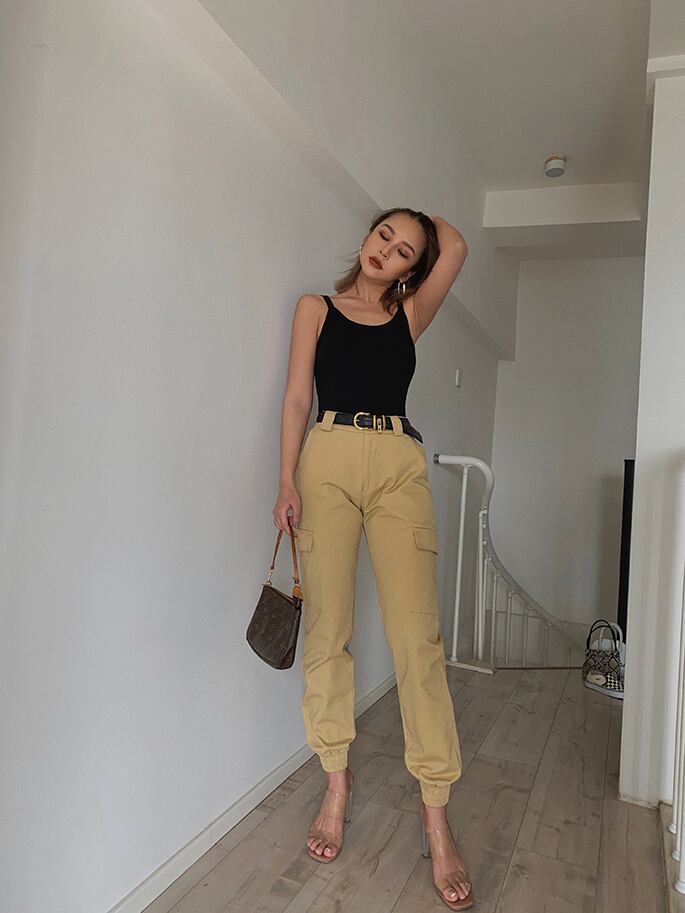 カーゴパンツ ビームパンツ 9分丈パンツ ルーズ ストレート ハイウエスト スリミング カジュアルパンツ ストレートパンツ 2カラー カジュアル ストリートファッション アメカジコーデ a2810