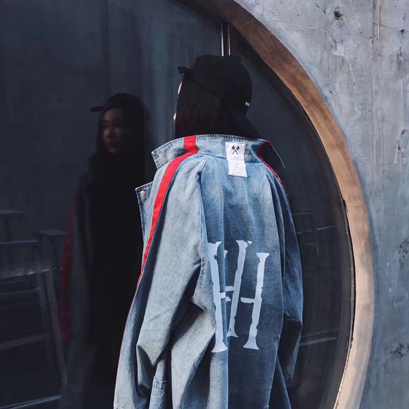 デニムジャケット ルーズ ミドル丈 デニム ジャケット アウター レッドバー バックプリント カジュアル ストリートファッション アメカジコーデ a2854