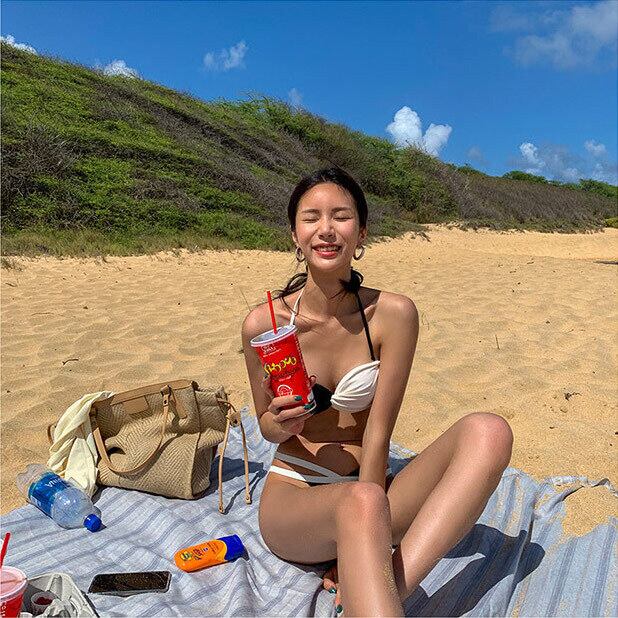 バイカラー ビキニ 水着 スプリットビキニ bikini レディース ホルターネック スタイルアップ カバー力 トレンド 新作 夏 海 プール リゾート セクシー a2975
