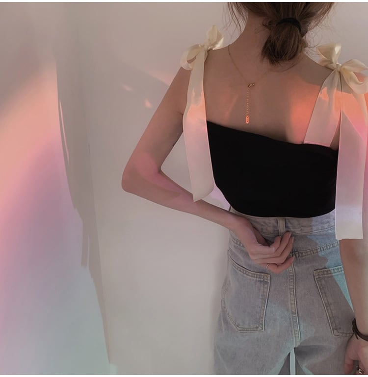 ショルダーリボン ショート丈 トップス チューブトップ ボウノットスリング レディース 韓国 オルチャン ガーリー a2889