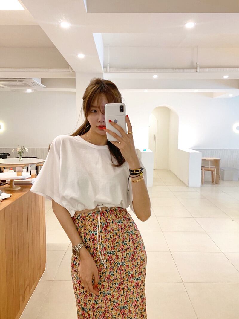 沢山の花柄が散りばめられたロングマーメイドスカート