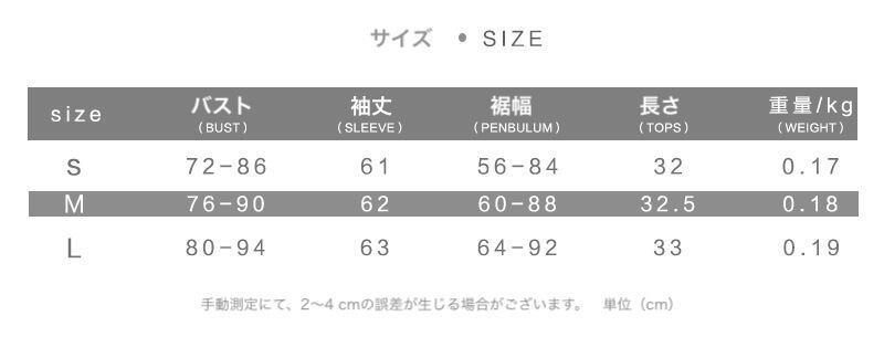 注:手動測定にて、2〜4 cmの誤差が生じる場合がございます。