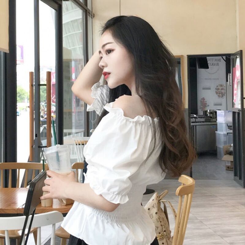 ウエストリボンベルト風 オフショルダー. ブラウス ストラップレス シャツ 薄手 レースアップ リボン 韓国 オルチャン 4カラー a2895