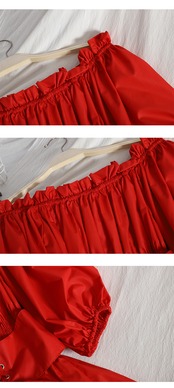 ウエストリボンベルト風 オフショルダー. ブラウス