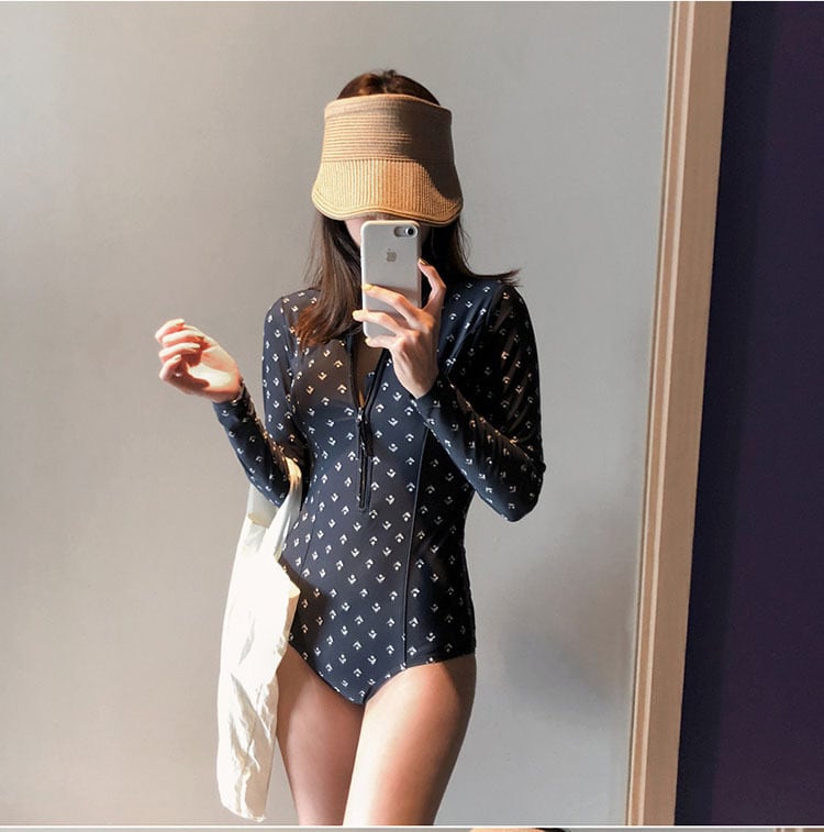 長袖 ワンピース水着 ラッシュガード ビキニ 水着 フロントジッパー. 総柄 日焼け止め スリム スポーティ サーフィン. レディース スタイルアップ 体型カバー トレンド 新作 夏 海 プール リゾート セクシー a2999
