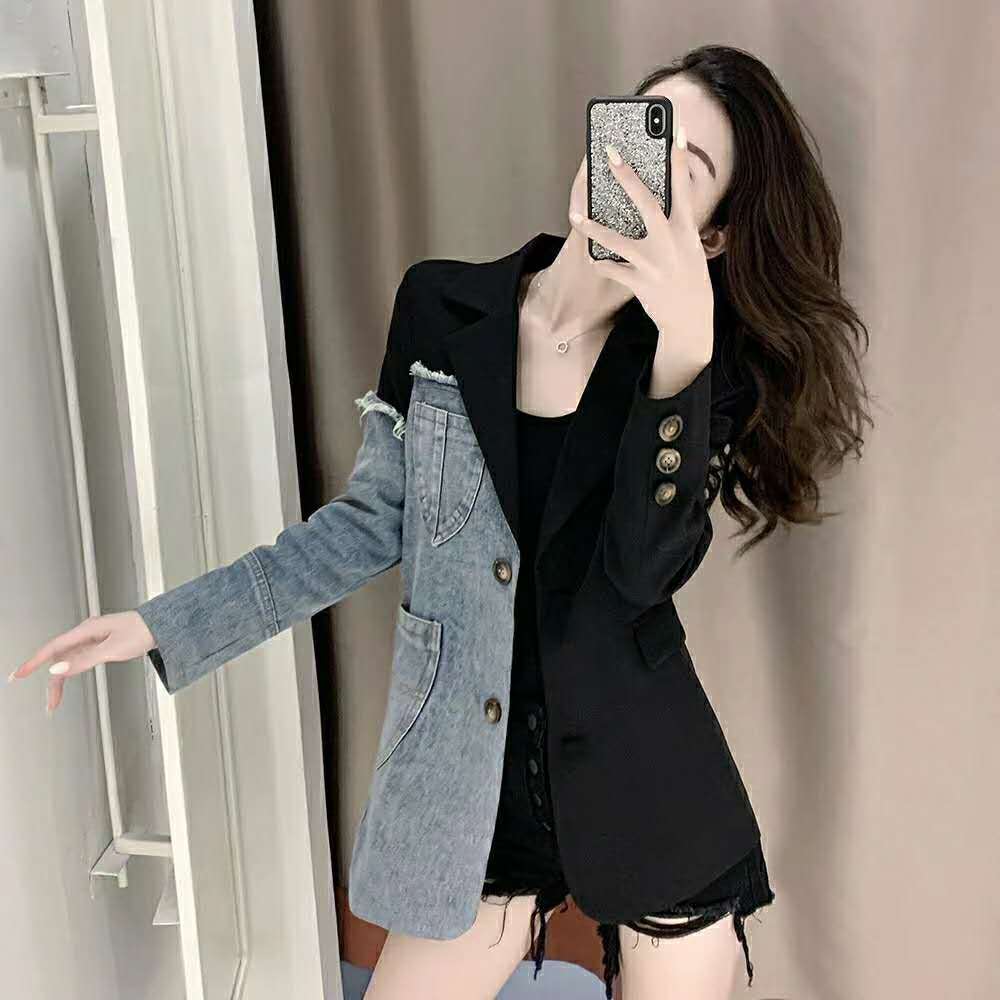 デニムステッチジャケット デニムジャケット スーツジャケット アシメントリー ジャケット ルーズ ストリート アメカジ 春夏秋 韓国 オシャレ a2913