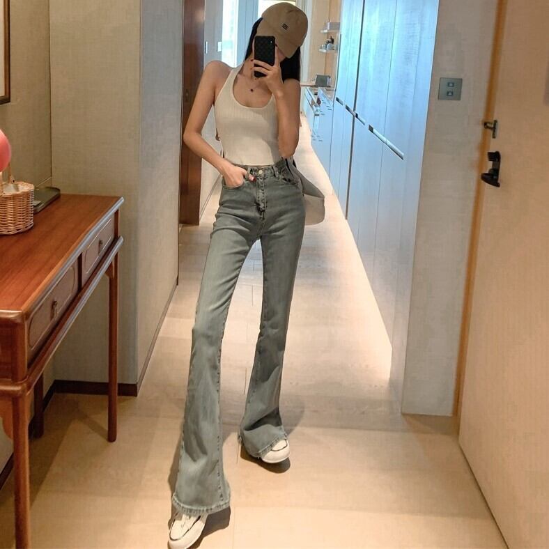 フレア スリット ジーンズ デニム ストレートジーンズ パンツ ハイウエスト ワイドレッグ スリム 韓国. a2928