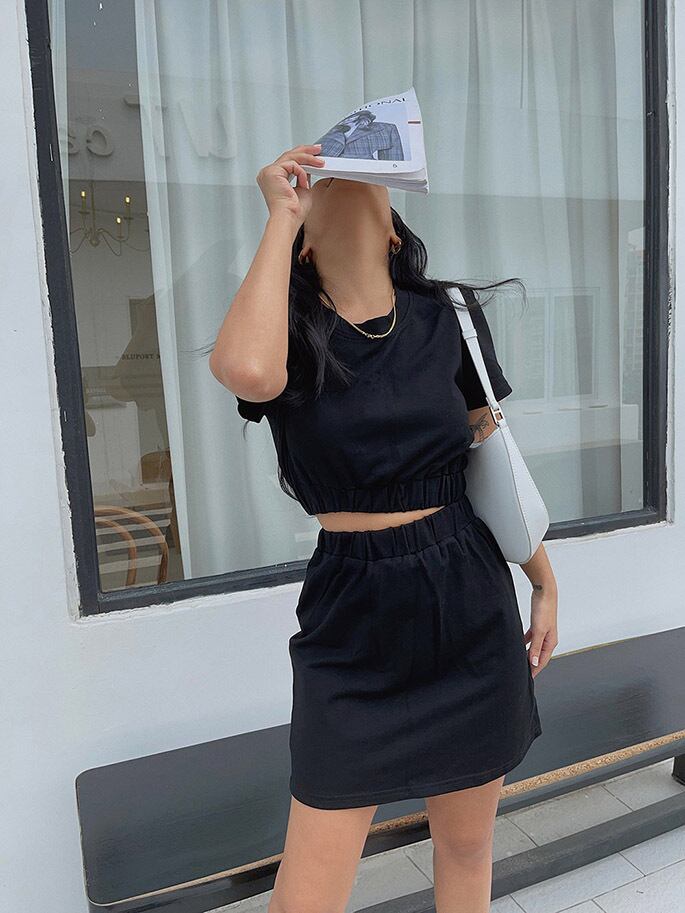 【セットアップ】半袖トップス+ハーフスカート ツーピース ミニスカート ショート丈 トップス ストリート アメカジコーデ 夏 トレンド 4カラー a2935