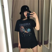 プリント半袖Tシャツ ラウンドネック 半袖Tシャツ Tシャツ ルーズ 春夏 韓国 オルチャン a2951